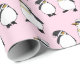 Cute Winter Penguins on Pink Christmas Pattern Wrapping Paper