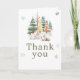 Rustic baby birthday thankyou card with cute bunny rabbits, trees and snowflakes. Perfect for a winter birthday party. The words can be changed to suit your own details or requirements