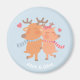 A cute pair of reindeer with scarves are holding their hooves together in a dance. Adorable illustration suited for a winter wonderland romance. Personalise with couple's names.