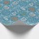 This Woodland wrapping paper has a cute winter sweater pattern based off of the theme of classic Fair Isle knitted designs. The pattern is of blue and white circles and diamond stripes. Each shape has a different cute winter motifs in it. There are animals like a rabbit, owl, fox and bear. There is also a pine tree with snow, two snowflakes and a pine cone. In-between the designs you have another snowflake and diamond design. You can make the pattern on the wrapping bigger or smaller.