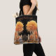 Cute Witch and Cat Outside Gate Halloween Tote Bag