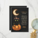 Invite your guests to a spooktacular celebration with this adorable Halloween design. Featuring a charming black cat in a witch's hat perched on a carved pumpkin under a crescent moon, this design is perfect for a fun, not-so-scary party. Easily personalise with all your event details.