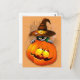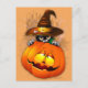 Cute Witch Cat and Pumpkin Halloween Friends Postcard