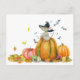 Cute witch mouse on the pumpkin postcard