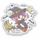 This playful Halloween-themed sticker showcases a cute cartoon-style girl riding a broomstick, paired with the fun phrase “Witch Riding A Broomstick.” With its whimsical, lighthearted charm, this illustration is perfect for spooky season fun, magical vibes, or anyone who loves charming witchy aesthetics.