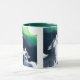 Like father, like son! This is an AI generated artwork of a father wolf and his oldest male pup, both howling at the full moon on a cold winter's night, with aurora borealis lights filling the sky.