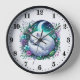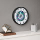 The size of the clock is dramatic and the abstract alcohol ink design is soothing and intricate at the same time. I chose the black frame that adds pop to the blue and gold design. The gold printing would be better in a slightly darker or larger font. I love it and I’m looking for just the right place in ny new apartment. I would recommend this clock for a personal gift or a present. I feel that the quality is excellent for the money! I’m a bit of a clock nut so I’m pretty particular about my purchases. The clock is larger in diameter than many if the clocks I have, so it stands out very well. I think a slightly darker printing color and a moderately larger size would best suit a professional decor or add more impact in a work place item.
