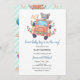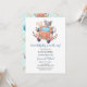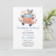 Adorable baby shower invitation featuring an adorable grey wolf, and a festive creamsicle-coloured car. This invitation is perfect to celebrate the soon-to-be parents of a baby boy.