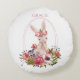 Cute Woodland Animal Bunny Floral Name Round Cushion
