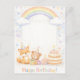 Celebrate a special birthday with this adorable watercolor birthday card featuring a cheerful rainbow, cute woodland animals, and a sweet cake design. Soft pastel tones and a playful illustration make this card perfect for kids’ birthdays, toddlers, and young children.