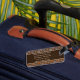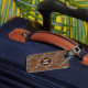 This Cute Woodland Autumn luggage tag has a cute woodland sweater pattern based off of the theme of classic Fair Isle knitted designs. The pattern is of brown and tan circles and diamond stripes. Each shape has different cute woodland motifs in it. There are animals like an owl, fox, racoon, and squirrel. You also have two fall leaves, an acorn and mushrooms. In-between the designs are two different turquoise shapes. On the front in matching colour is where you can put your initial. On the back you can personalise this with your information or delete the info for it to be blank.