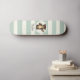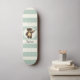 Cute Woodland Brown Bear; Sage Green Stripes Skateboard