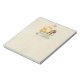 A personalised notepad with a cute illustration featuring a baby deer and a little squirrel holding an acorn and a butterfly flying above their heads. These adorable woodland creatures on standing on some grass with some whimsical mushrooms by their feet. Light brown background, with a kraft paper look.