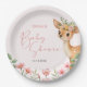 Watercolor Cute Woodland Deer Baby Girl Shower Paper Plates.