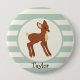 Cute Woodland Deer; Sage Green Stripes 10 Cm Round Badge