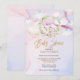 Celebrate the upcoming arrival of your precious baby with this elegant, chic, pretty and dreamy 'Baby Shower Invitation' featuring a beautiful woodland forest rabbit in pink pyjamas sleeping on pink floral foliage and polka dot balloon wreath at the front. The title features gold foil like calligraphy .The background features clouds on pink blue gradient watercolor. All the texts are pre-arranged for you to personalise easily and quickly with your baby shower details.