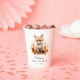 Celebrate a fall baby shower with these adorable woodland-themed paper cups featuring a watercolor baby fox sitting among autumn leaves in warm shades of orange, yellow, and red. Perfect for woodland or forest-themed baby showers, these cups can be personalised with the mother-to-be’s name and the date of the event. Designed to coordinate with our Cute Woodland Animals Fall Baby Shower collection, they add a sweet and seasonal touch to your party décor.