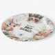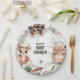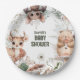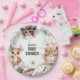 Adorable Sweet Woodland Baby Shower Paper Plates. Design features cute watercolor animals amongst botanical autumn fall florals and foliage, mushrooms, butterflies and a customisable template.
