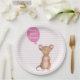 NewParkLane - Personalised Paper Plates, with a soft pink (blush) and white striped design, with a cute woodland mouse in watercolor, with a pink balloon for your personalise text.