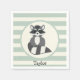 Cool, retro, colourful kid's Cute Woodland Racoon; Light Sage Green design on white stripes, striped pattern with vintage feel. Perfect gift for baby, toddler, kids, children, teens, or adults! Personalised the design by adding a child's name or custom text. Visit our store, Birthday Party House, for more great customisable boy and girl products!