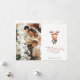 Stylish and fun, these photo holiday cards are a great way to send holiday love and joy to friends and family this Christmas. The design features a cute watercolor painted reindeer elf with horns, a hat, scarf, and jacket. The text matches colours from the deer's outfit. Swap out the family photo with your own and add your family names to customise. There's space for additional text on the back or delete it to leave blank.