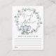 A cute baby boy shower invitation enclosure card that features "Words of Advice" in a stylish script with a heart swash and a watercolor of a pastel blue baby elephant in a wreath of sage green eucalyptus greenery.