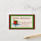 Adorable worm sticking it's head out of a red apple that's sitting on a book, with a fun green and dark red frame, around this fun teacher's business card. Nice business card template for teachers and tutors. Customise this card to change the text.
