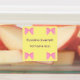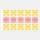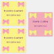 Prepare for back-to-school with these pink and yellow kids' labels, perfect for marking your children's belongings. The labels are organised into two columns: one featuring yellow labels adorned with a pink bow beside the text displaying the girl's name, and the other column showcasing pink labels with a yellow bow. The text is elegantly styled in royal purple and can be easily customised or removed according to your needs.
