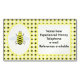 This awesome business card magnet set features a graphic image of a cute yellow baby bee with black legs and beady eyes. He has a yellow fuzzy body with black stripes and cute black antennae on his fuzzy head. His delicate little wings have a pale blue mottled pattern on them.