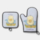 Cute yellow baby duckling cartoon illustration oven mitt & pot holder set