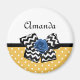 Add a girly vibe to your personal style with this cute yellow and white polka dot pattern magnet with a trendy black and white chevron bow and a chic blue ribbon rose. Make this yellow and blue retro meets modern design personalised by adding the name of your teen girl. Flat printed image, NOT actual rosette ribbon and bow.