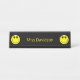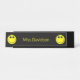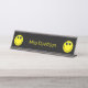 This name plate features a cute yellow smiling emoji face. Personalize with teacher's name.