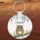 Cute yellow heart owl on branch personalised keychain.