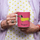 This cute yellow and pink Dachshund dog name funny giant coffee mug features a playful and vibrant design. With a fun Dachshund graphic in cheerful colours, it’s perfect for enjoying your favourite hot beverages in style. Ideal for dog lovers, this oversized mug adds a touch of whimsy and warmth to your morning routine!