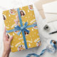 Cute Yellow Reindeer Kid`s Name Photo Christmas Wrapping Paper