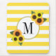 Cute Yellow Stripes Sunflowers Floral Monogram Mouse Mat