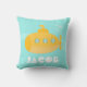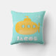 An adorable cartoon of a yellow submarine with blue window panes and bubbles coming out from the side. Background of blue wave lines to illustrate that the underwater craft is submerged underwater. This attractive and cute design pillow with calm blue and touch of yellow is ideal for babies and toddlers in the bedroom or nursery. Personalise easily with child's name.