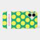 Cute yellow tennis ball pattern personalized iPhone Case. Custom phone covers for her. Fun typography design with sporty print. Cute new case with trendy artwork. Unique Holiday or Birthday gift idea for her. Apple smartphone accessories, version eleven. Add your own name or inspirational quote. Also for other models and Samsung galaxy phones. Great for tennis player, mom, coach, trainer, teacher, instructor, girl, sister, wife, girlfriend etc. Also great for padel lover!