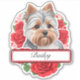 Yorkshire & Red Roses Custom Label, a delightful and personalised addition designed for women and girls who adore the charming combination of Yorkshire dogs and the beauty of red roses. This sticker features an adorable Yorkshire dog surrounded by elegant red roses, accompanied by a customisable label where you can proudly display your beloved pet's name.