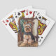 These poker cards feature an adorable painting of a Yorkshire Terrier, capturing the playful and spirited nature of this beloved breed. The artwork showcases the dog's distinctive long, silky fur and expressive eyes, bringing to life its charming personality. Each card is designed with vibrant colours and intricate details, making them not only functional for card games but also delightful to display. Perfect for dog lovers and poker enthusiasts alike, these cards add a fun and whimsical touch to game night, making them a wonderful gift or a unique addition to any collection.