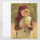 Cute Young Girl Holding Yellow Buttercup Flowers Card