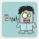 This is a cute Halloween season sticker, with a cartoon image of a Zombie monster with goofy eyes and lots of teeth! The text on the left side says "Need more Candy" in black and red. The image and text are placed on a teal background.