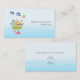 Whimsical business cards with a cute nursery style illustration of an ark filled with wild zoo animals and a butterfly flying overhead and a friendly whale spouting water below. Some blue clouds float on by. Set on a light blue ombre background.