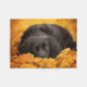 This Getty Cutest Baby Animals photo features a black spaniel lies in yellow and orange autumn leaves.