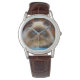 The watch looks really great! Very sharp and well done. The leather band is really nice, though for a man's watch I think it should be longer. Unfortunately, it isn't big enough for my husband's wrist but I will get a replacement because he is very excited to wear it!