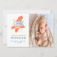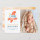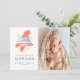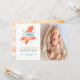 Cutest Bunny custom script and illustration with specifics in elegant sans serif font and your custom photo. Back side is in orange watercolor striped brushed pattern