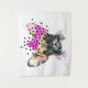 This design features a cute watercolor French Bulldog dressed in a very fashionable black and pink polka dot bow.