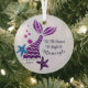 Customisable Holiday Christmas Jingle Glitter Mermaid design. Cute Mermaid Christmas Ornament with custom holiday Christmas jingle with quirky mermaid pun wordplay and custom Christmas year. Purple blue glitter mermaid with air bubbles, seashells graphic, with customisable Christmas jingle "Tis is the season to jingle and Mermingle" graphic print ornament celebrating mermaid fans, enthusiasts. Cute funny Holiday Mermingle design. Add a classic, yet personal, touch to your holiday décor with your own text Christmas slogan etc. eye-catching round glass ornaments from Zazzle.
