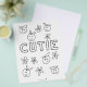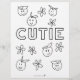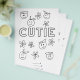 Delight the little guests at your baby shower with our Cutie Colouring Page. This engaging page features the word "Cutie" in bold block letters, perfect for colouring in. Surrounding the text are adorable little cutie oranges with sweet faces, along with charming flowers to colour. This activity is sure to keep kids entertained and add a touch of fun to your event. (For best results, choose thin matte paper when ordering.)