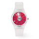 A red and pink clock face made from spoons and forks. How great is that for an awesome pink watch!